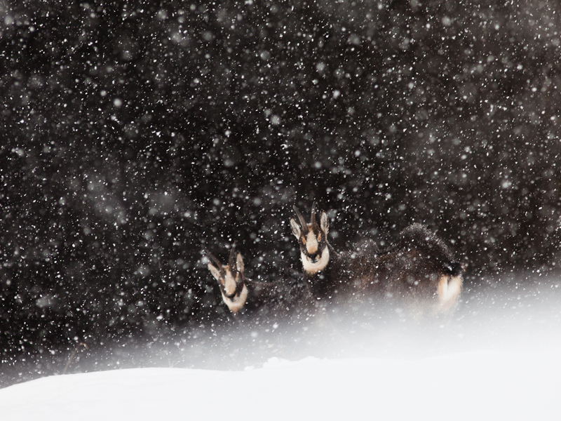 Gämsen im Schnee -