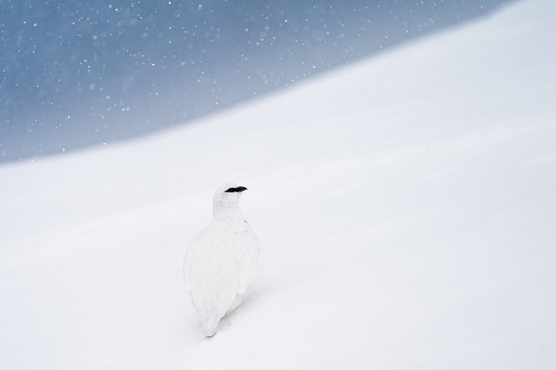 Schneehuhn im Schneefall -