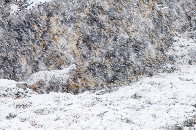 Steinbock im Schneesturm